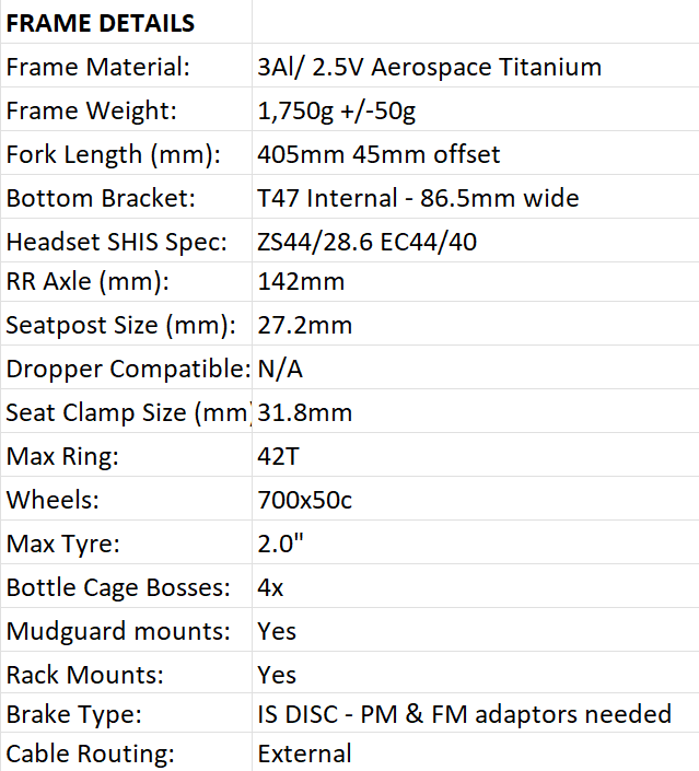 The Eight Bells Frame is Gravel to the MAX. This Gravel bike has been calibrated to run drop bars with larger tyres. We have taken everything that we have learnt from mountain and adventure bikes and adjusted the geometry for drop bars. Wider tyres mean more grip and more comfort on those long fire roads, this bike will take you places and back again.
