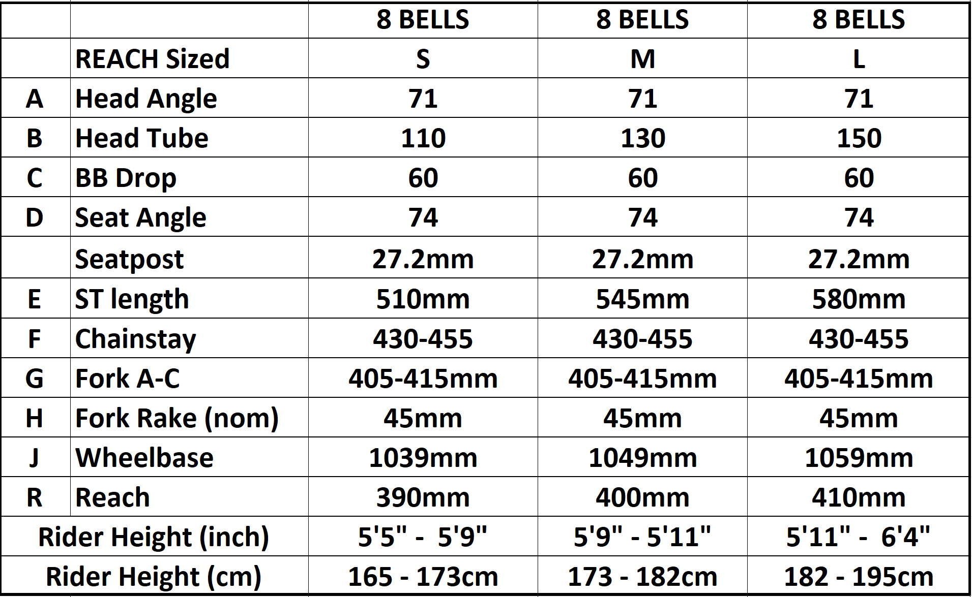 The Eight Bells has been designed a drop bar geometry fitting up to 50mm tyres. It is at home on forest roads with a sprinkling of gravel and dirt ruts. It is part commuter part adventure. You can ride this bike fixed or single speed. Great for shouldering up cyclo-cross climbs or built into a an Alfine or Rohloff hub to load up with touring luggage. The Eight Bells can run 415mm A-C Lauf GRIT Gen3 suspension forks...